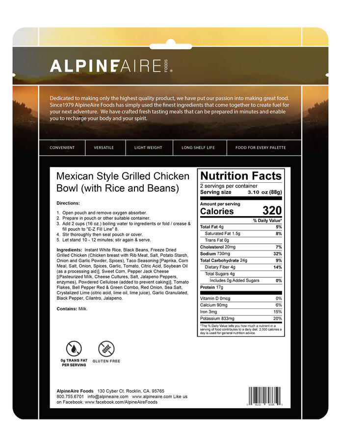 Seasoned chicken, corn, beans, and rice with zesty lime and pepper jack cheese.
