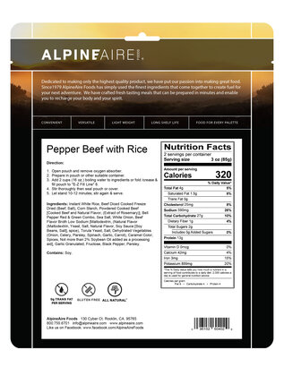 Spicy beef with green & red peppers with seasoned rice accented with black pepper.