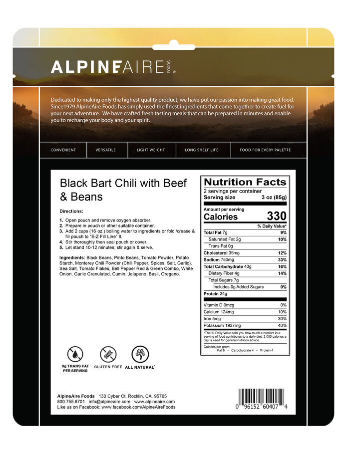 A delicious chili with black beans, kidney beans & beef and a spirited classic chili taste reminiscent of the Wild West. Gluten Free.