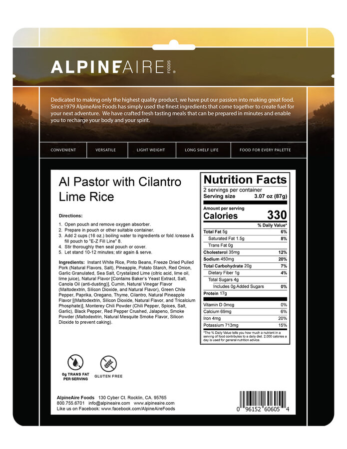 Enjoy a Mexican-style favorite that is unique to the outdoor food world! Tender sweet and smoky pork with chiles, pineapple, pinto beans, and cilantro lime rice for a flavor reminiscent of street tacos.