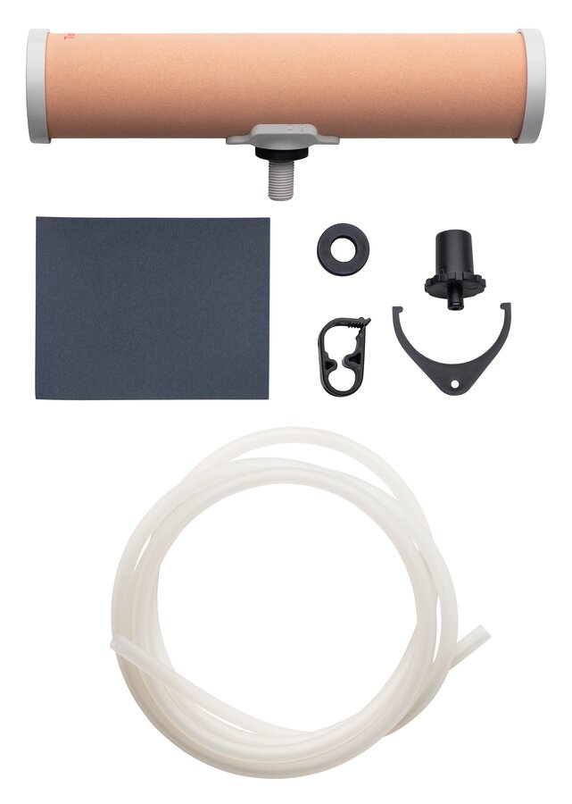 The Katadyn Rapidyn Siphon Kit is a ceramic microfilter and removes bacteria, protozoa, sediments as well as particles larger than 0.2 microns without the use of chemicals. However, no essential minerals are removed. All delivered parts last for up to 20.000 liters with no need for replacement. The output is up to 4L/h.