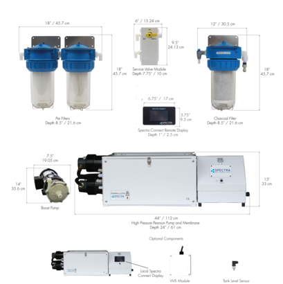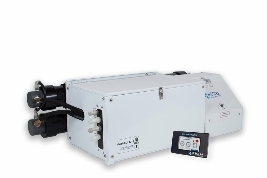 The Farallon systems are designed with Spectra’s unique Pearson Pump technology for unrivaled reliability, energy efficiency, and durability and feature the Spectra Connect Controller. The Spectra Connect allows you to operate and monitor your watermaker from a remote device, and has added features like the Fill Tank mode, or a customizable Auto Run mode, One-Touch Sensor Calibration, and suggested maintenance intervals displayed on the dashboard, taking the guesswork out of operation and upkeep! The slow-moving pumps mean less maintenance, longer, quieter, trouble-free operation. The Farallon’s variable frequency drive motor controller ensures soft starts with no massive inrush current to crash your inverter or generator at startup. Powered by 110v or 220v AC, these systems bring municipal scale desalination plant features to your fingertips.