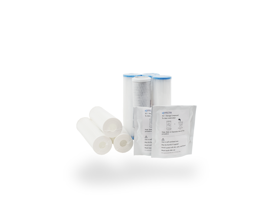 This kit includes three 5 micron filter elements, three 20 micron filter elements, one charcoal filter element, two bags of SC-1 storage chemical. This kit is compatible with the Ventura 150 MPC, Ventura 200T MPC, Newport 400 MKII, Newport 700 MKII, Newport 1000 MKII, and older units such as the Spectra 180C, 200C, 380C, Santa Cruz, and Gulfstream MPC.