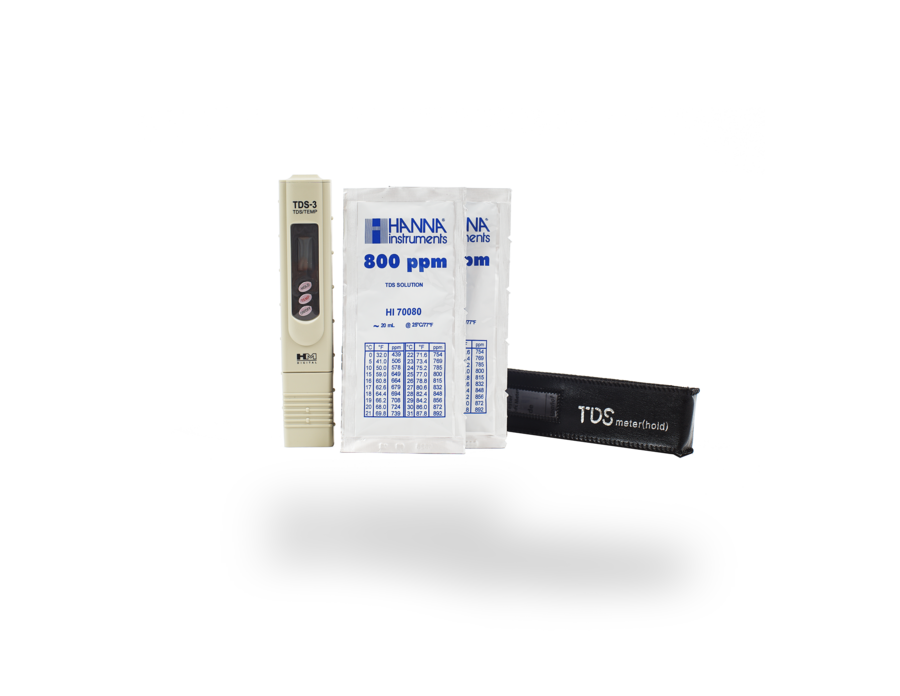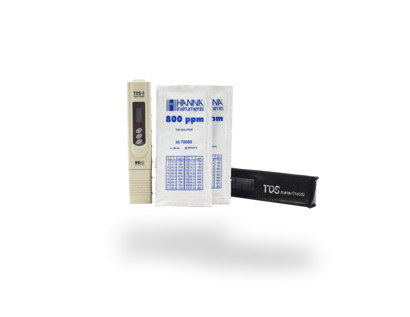 For digitally testing water quality. A handheld salinity meter digitally tests the total dissolved solids (TDS) of your product water, which is any salt, metal, or mineral in the water. With the push of a button, it can tell you the overall water purity level, which is displayed on the screen in parts per million (PPM). It is a quick and inexpensive way to check the quality of the product water, or to calibrate the salinity probe on systems with MPC controllers.