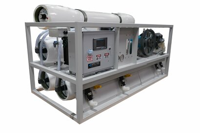 The LB 14,000 can desalinate water with amazingly little energy; as low a 8 watt hours per gallon or 2 watts per liter. The LB 14,000 F is contained within a rugged powder coated 304 stainless steel frame, pre-plumbed and tested with all components.